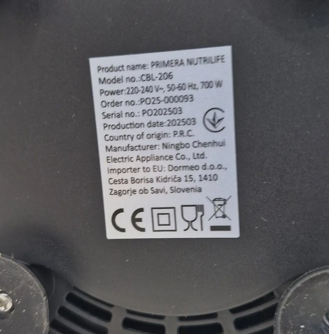 Mixér PRIMERA NUTRILIFE, Model no.: CBL-206