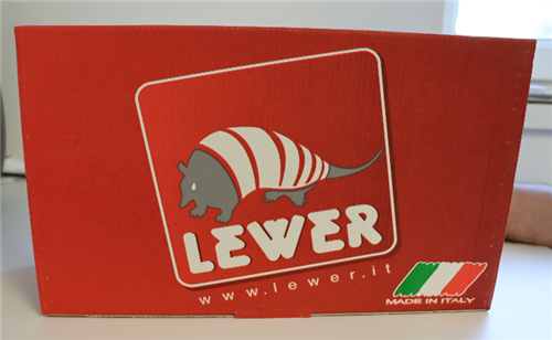 Členková bezpečnostná obuv s tužinkou v špičke, tmavomodrej farby, so šedou farbou jazyka, s čiernou podrážkou a s všitým textilným štítkom vo farbách talianskej trikolóry s obchodnou značkou výrobcu LEWER. Výrobok je balený v bordovo-červenej kartónovej krabici spolu s návodom na použitie.